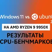 На платформе AMD Ryzen 9 9950X проведено тестирование производительности Windows 11 25H2 и Ubuntu 25.10. Ubuntu оказалась быстрее на 15% в ряде CPU-нагрузок. Использовались 32 ГБ DDR5-6000, SSD Crucial T705 PCIe 5.0 и Radeon RX 9070. Тесты выполнены на чистых установках ОС