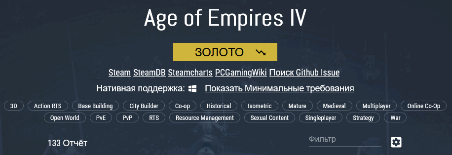 Игры в ProtonDB оцениваются с использованием системы медалей, аналогичной той, что использовалась в WineDB в течение последних 20 лет. Если у игры есть золотая медаль, то вы можете ожидать, что она будет работать точно так же, как в Windows. Сюда входят такие игры, как Microsoft Flight Simulator, No Man's Sky, Back for Blood, Cookie Clicker, Dark Souls III, Stardew Valley и другие. Кроме того, комментарии пользовательских отчетов могут быть полезны для решения возможных проблем.