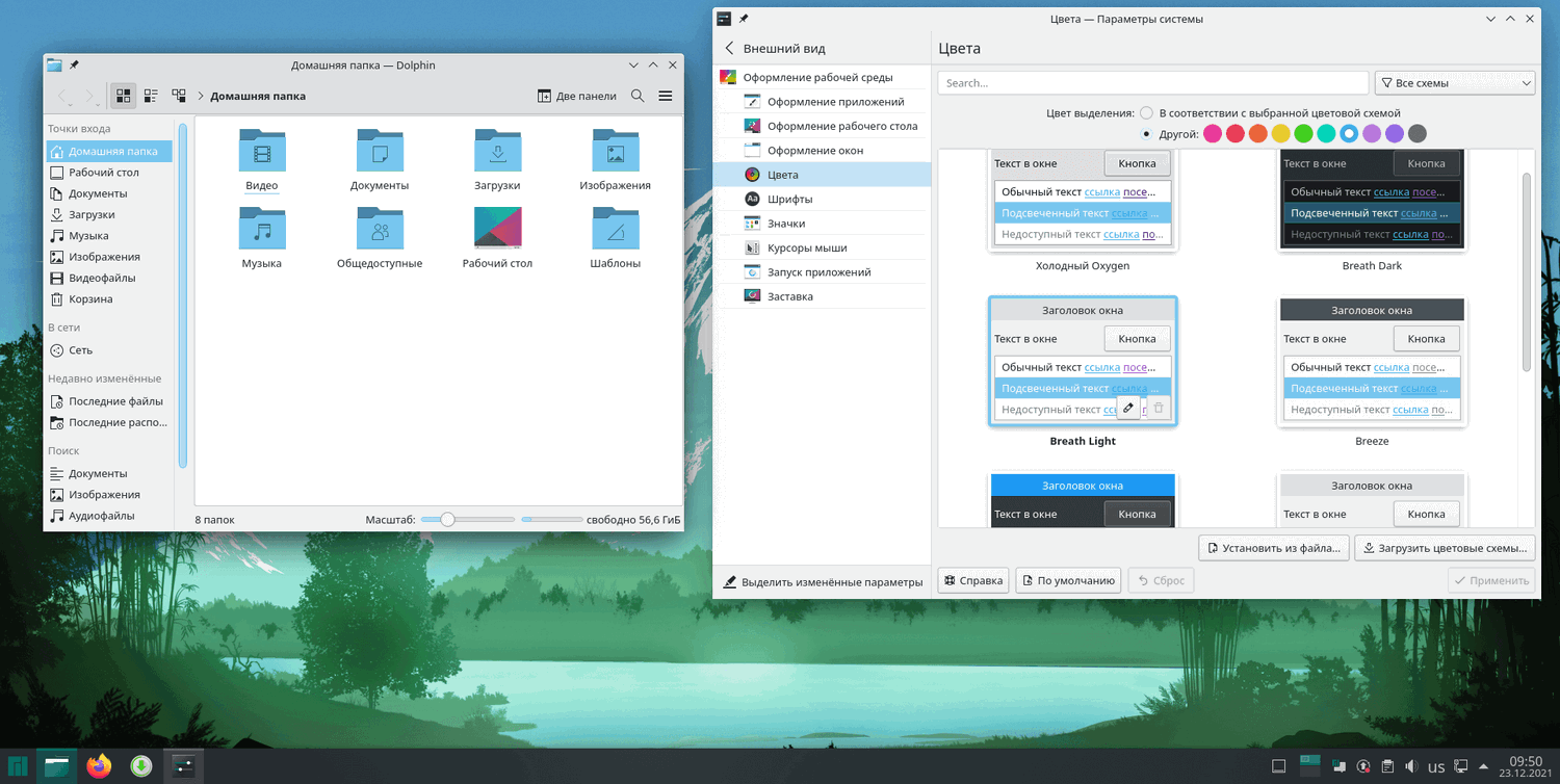 Редакция KDE Plasma поставляется с последней серией Plasma 5.23, Frameworks 5.88 и Applications (Gear) 21.12. Была улучшена тема оформления по умолчанию, теперь она лучше соответствует теме Breeze. Активные элементы в диалоговом окне, например, “загораются” при фокусировке окна. Полосы прокрутки и панели прокрутки стали больше, что делает их более доступными и простыми в использовании с сенсорными экранами, но они были переработаны таким образом, чтобы по-прежнему выглядеть элегантно на настольных компьютерах и ноутбуках.