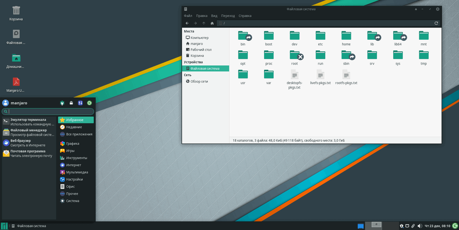 Manjaro Linux 21.2.0 «Qonos» с рабочим окружением XFCE