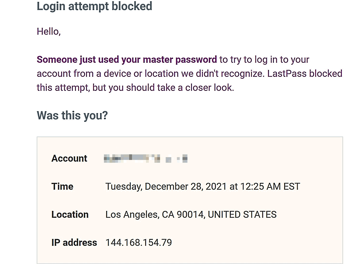 LastPass заблокировал эту попытку, но требуется ваше внимание. Это были вы?