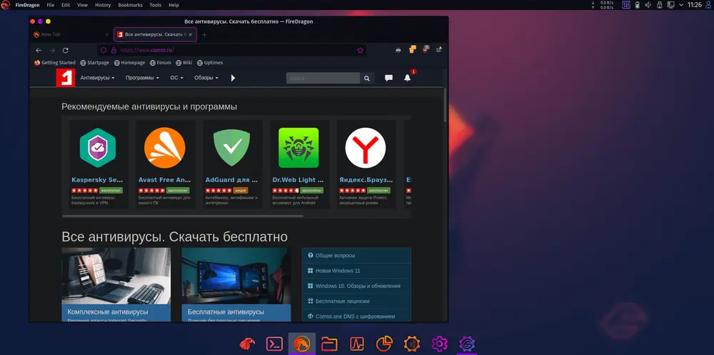 - Firefox 95.0.1 в качестве веб-браузера по умолчанию