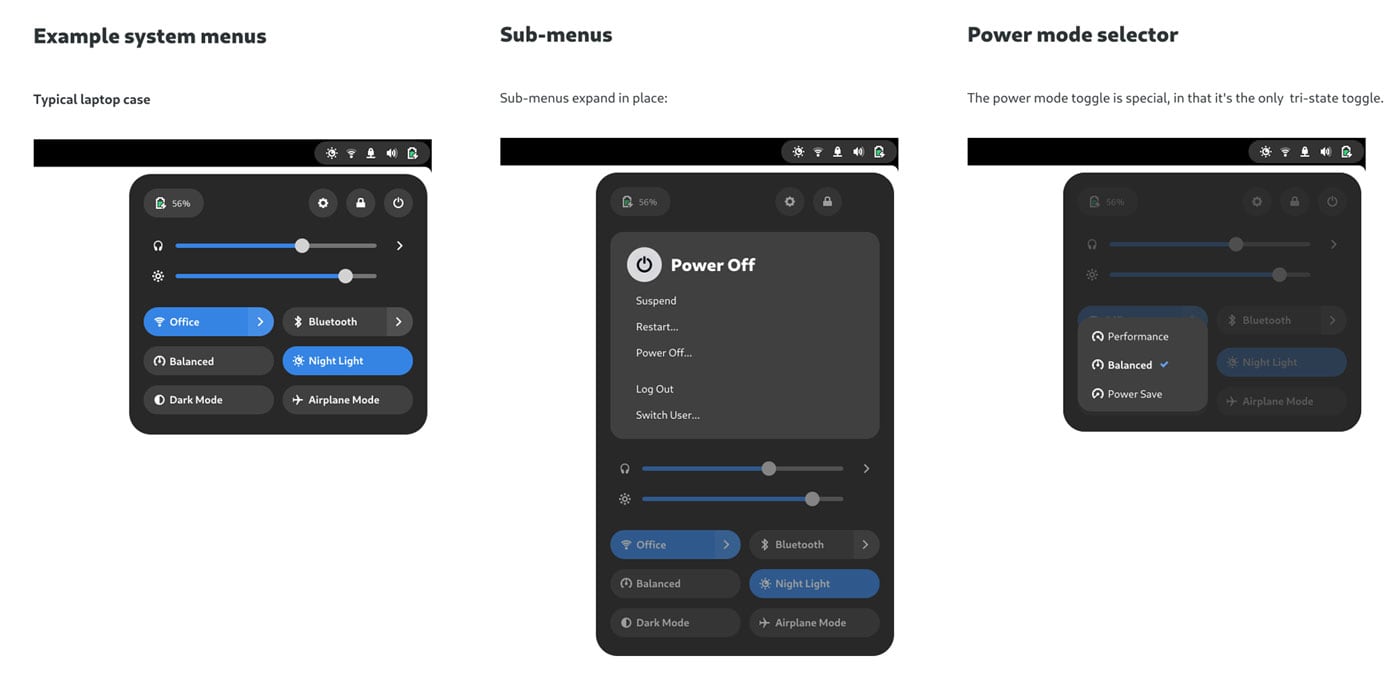 Дизайнер GNOME Аллана Дэя представил последние макеты функции быстрых настроек.