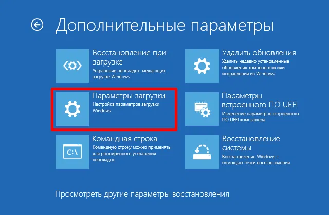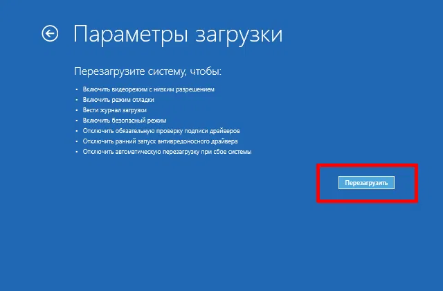 Затем, во время загрузки, появится экран с параметрами. Выберите раздел Поиск и устранение неисправностей > Дополнительные параметры > Параметры загрузки > Перезагрузить. Далее, нажмите соответствующие клавиши для выбора нужной опции.