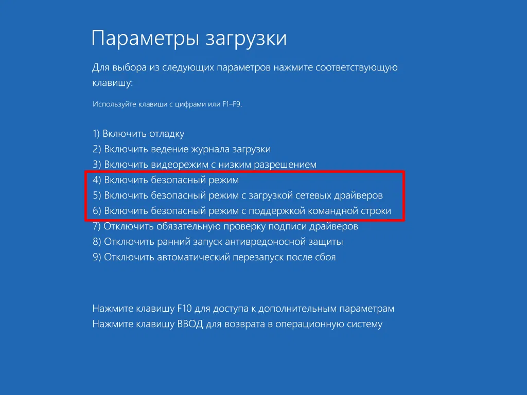 - Включить безопасный режим с загрузкой сетевых драйверов - безопасный режим с поддержкой сети и доступа к интернету.