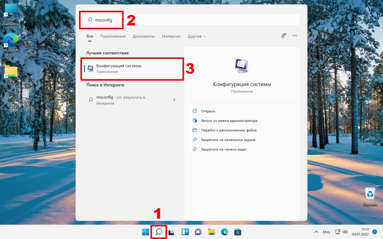 Загрузить Windows 11 в Безопасный режим можно через настройки Конфигурация системы. Чтобы попасть в эти настройки, в меню поиска / в поисковой строке меню Пуск или в окне Выполнить (Win+R) введите msconfig. В результатах поиска откройте приложение Конфигурация системы.