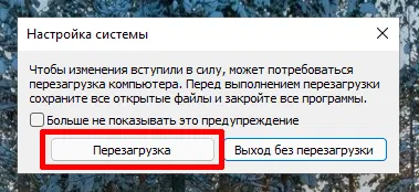 Появится запрос на перезагрузку Windows 11 в Безопасный режим. Нажмите кнопку Перезагрузка для запуска Безопасного режима или Выход без перезагрузки, если вы хотите перезагрузиться позже. В любом случае, все последующие загрузки операционной системы будут выполняться в Безопасном режиме.