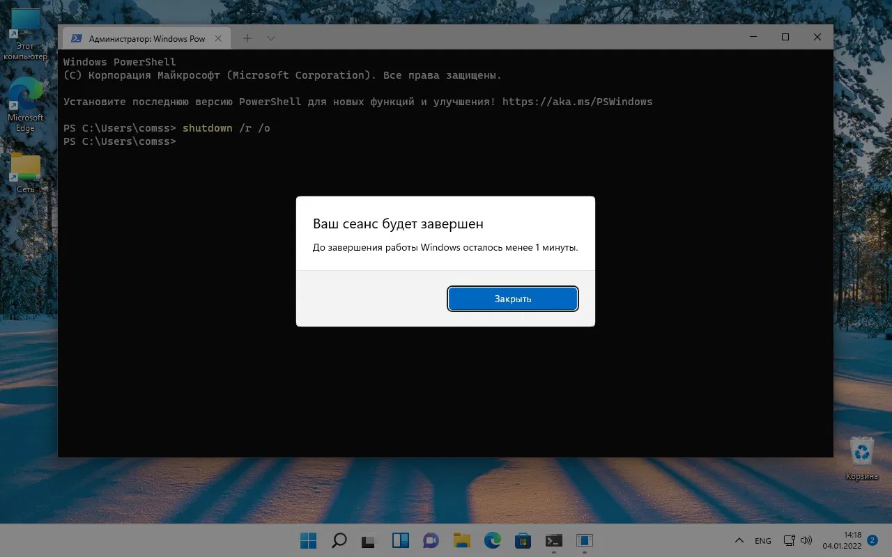 Ваша система будет автоматически перезагружена (не забудьте закрыть программы и сохранить все данные).