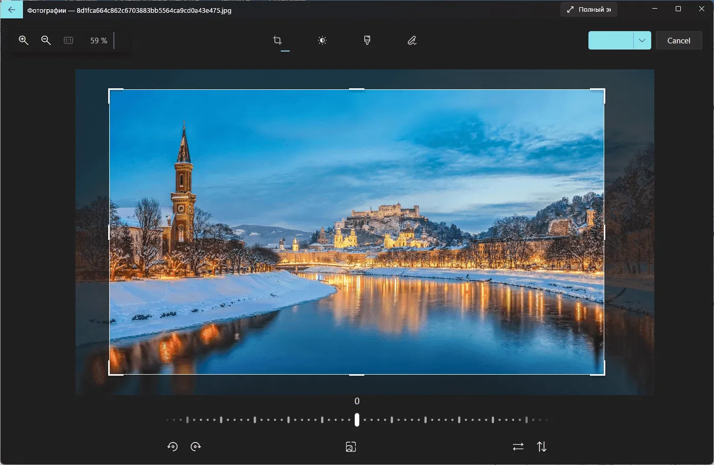 Графический интерфейс фоторедактора был полностью переработан. Кнопки инструмента Обрезки теперь расположены в нижней части экрана, вы можете управлять уровнями масштабирования с помощью опций в левой части.