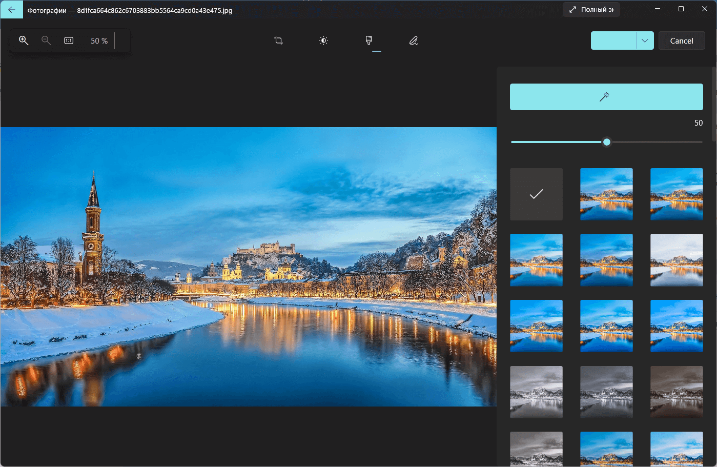 Примечание. В последней версии приложения “Фотографии” обнаружена ошибка, из-за которой не отображаются текст опций редактора.
