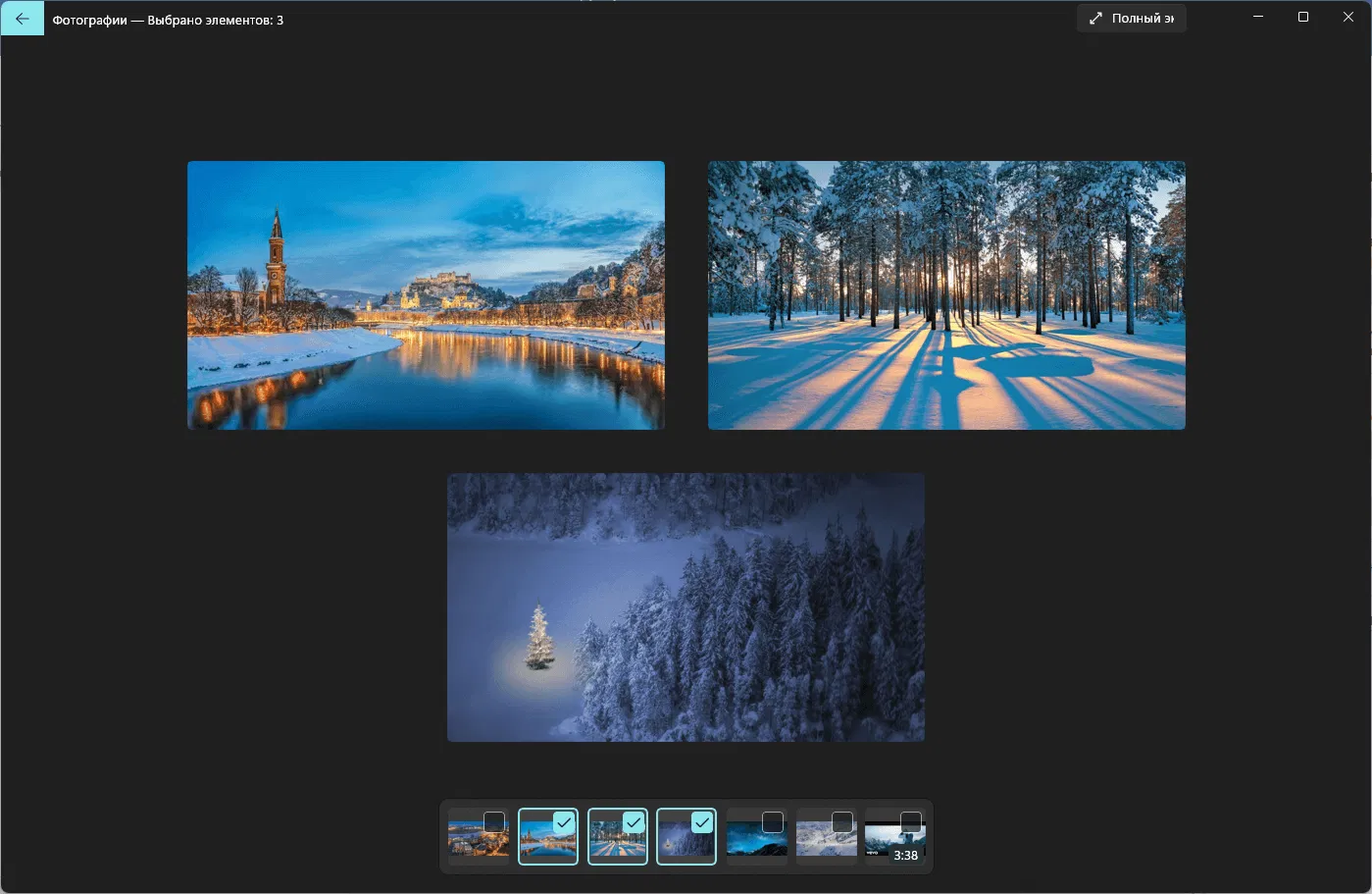 В новом приложении «Фотографии» есть функция позволяющая просматривать два и более изображений в сравнении. Чтобы воспользоваться данной функции, выберите изображения из полосы миниатюр внизу.