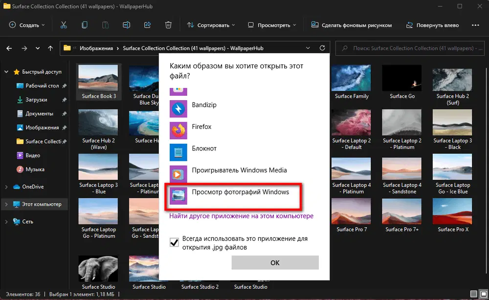 - Нажмите правой кнопкой мыши на изображение – из контекстного меню выберите "Открыть с помощью” > Выбрать другое приложение > Еще приложения. В раскрывшемся списке будет доступно приложение Просмотр фотографий Windows.