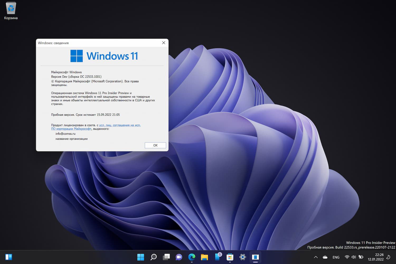 Windows 11, Версия Dev (Сборка ОС 22533.1001)