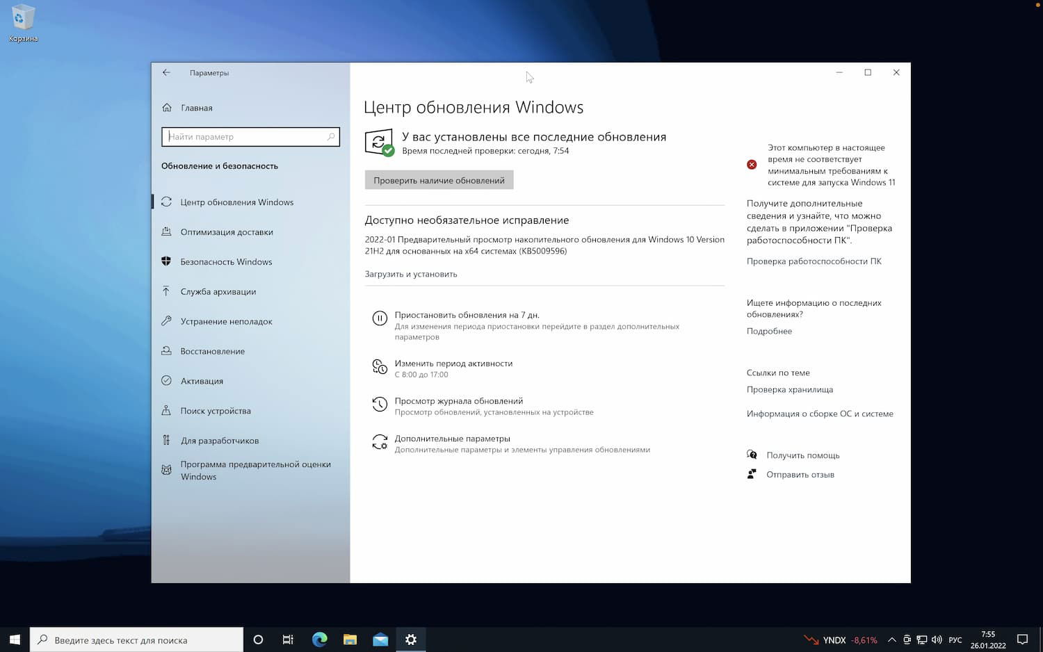 Обновлено: 26.01.2022. Обновление KB5009596 (Сборки 19044.1503, 19043.1503 и 19042.1503) Preview доступно для установки в Центре обновления Windows как «необязательное исправление» и для ручной загрузки в Каталоге Центра обновления Майкрософт.