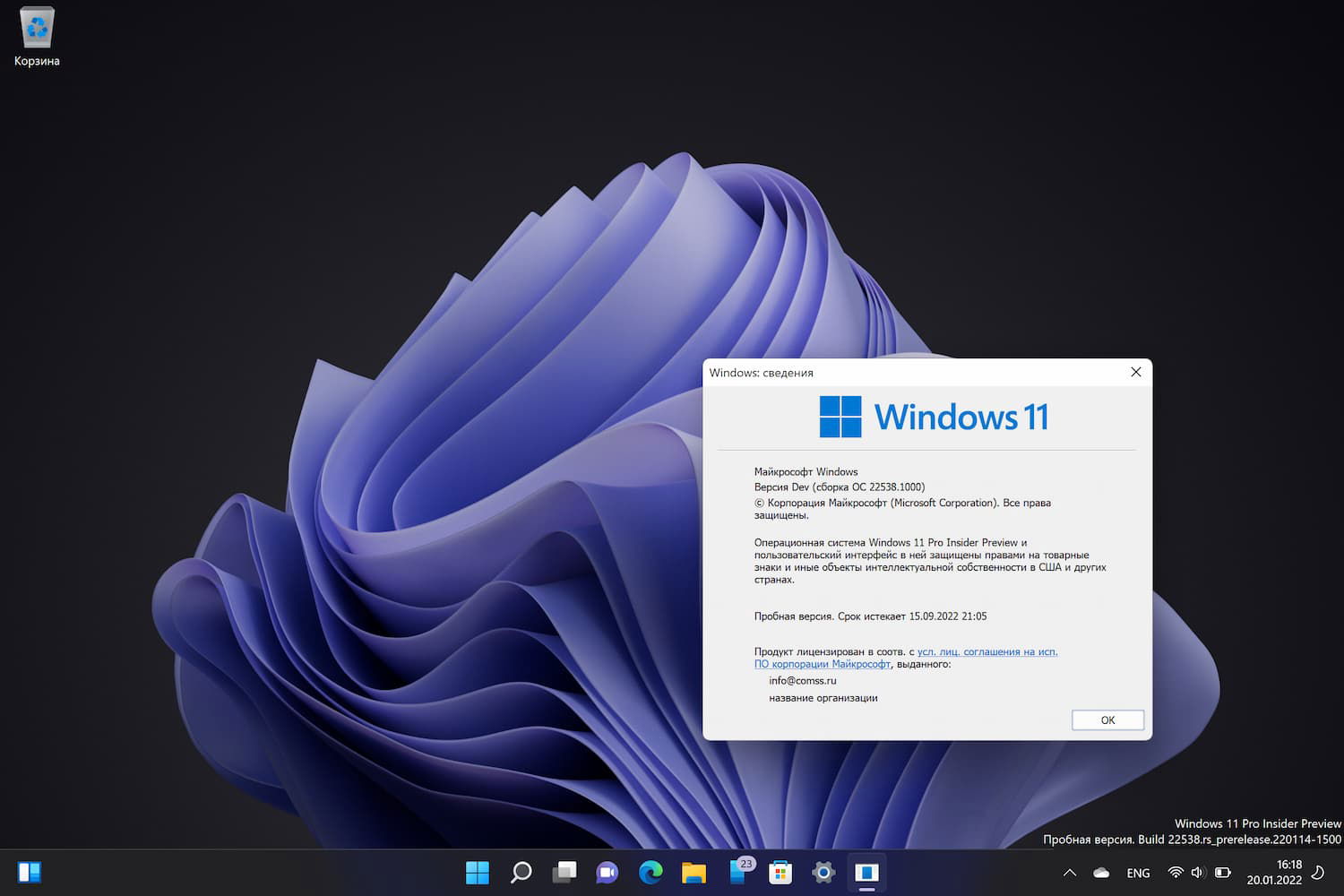 Windows 11, Версия Dev (Сборка ОС 22538.1000)