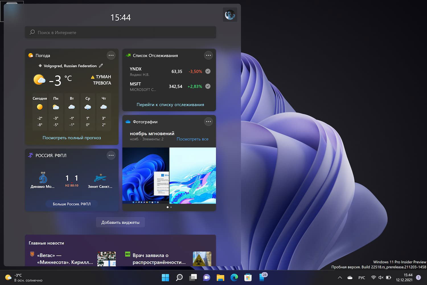 - Прогноз погоды на панели задач для доступа к виджетам, представленный в сборке 22518, теперь доступен всем инсайдерам на канале Dev.