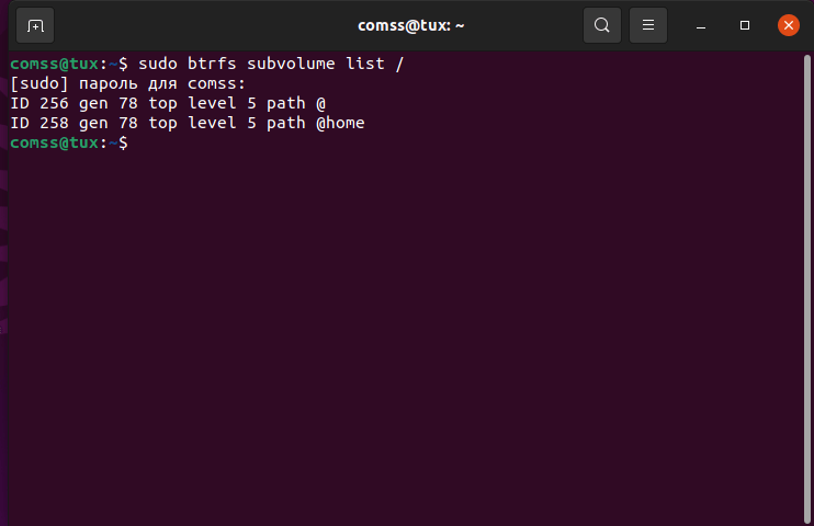 - Отредактируем файл btrfs. Откройте терминал и выполните следующую команду: