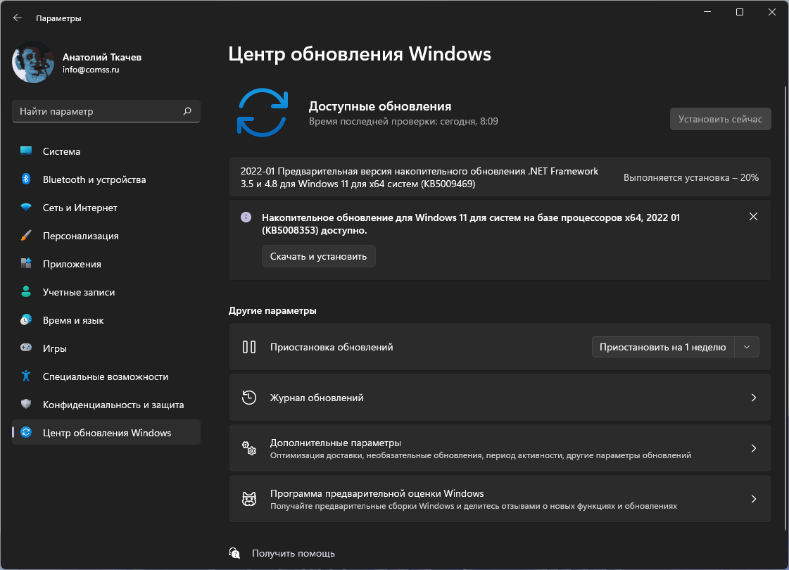 Для проверки перейдите в меню Параметры > Центр обновления Windows и нажмите Проверить наличие обновлений. Когда вы увидите, что доступно Накопительное обновление для Windows 11 для систем на базе процессоров x64, 2022 01 (KB5008353), нажмите Скачать и установить. Windows 11 получит обновление с серверов Microsoft и установит его. Для применения изменений потребуется перезагрузка ПК. В качестве альтернативы вы можете скачать обновление в Каталоге Центра обновления Майкрософт и установить его вручную.
