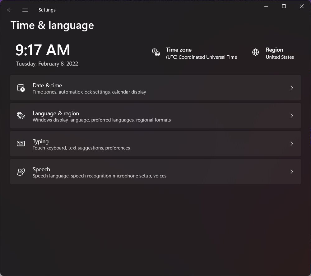 Как видно на скриншоте ниже, в окне «Параметры» раздела «Время и язык» будут отображаться время, дата, часовой пояс и регион.