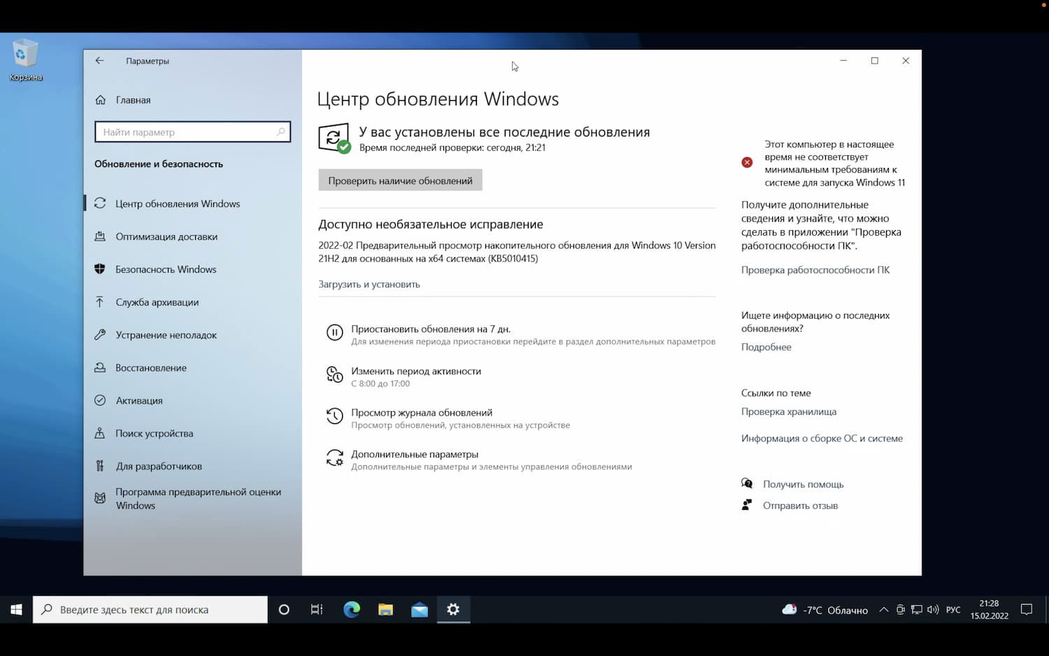 Обновлено: 15.02.2022. Обновление KB5010415 (Сборки 19044.1566, 19043.1566, и 19042.1566) Preview доступно для установки в Центре обновления Windows как «необязательное исправление» и для ручной загрузки в Каталоге Центра обновления Майкрософт.