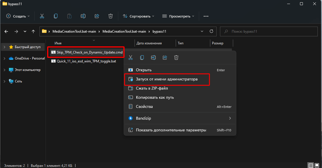 Skip_TPM_Check_on_Dynamic_Update.cmdи выберите «Запуск от имени администратора». - Если отобразилось сообщение «Система Windows защитила ваш компьютер», выберите «Дополнительная информация» > «Выполнить в любом случае».
