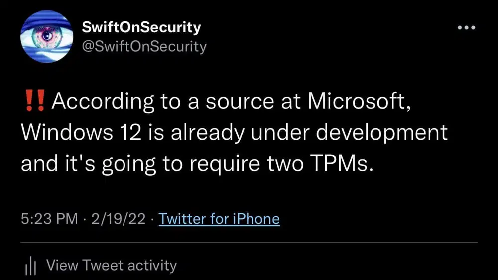 Исследователь безопасности, известный под ником SwiftOnSecurity, а также немецкий портал Deskmodder и еще ряд сайтов утверждают, что Microsoft уже работает над следующей версией Windows. Источники информации не раскрывается, но якобы эти сведения поступают напрямую от Microsoft. Однако, в аккаунте SwiftOnSecurity соответствующий твит уже удален.