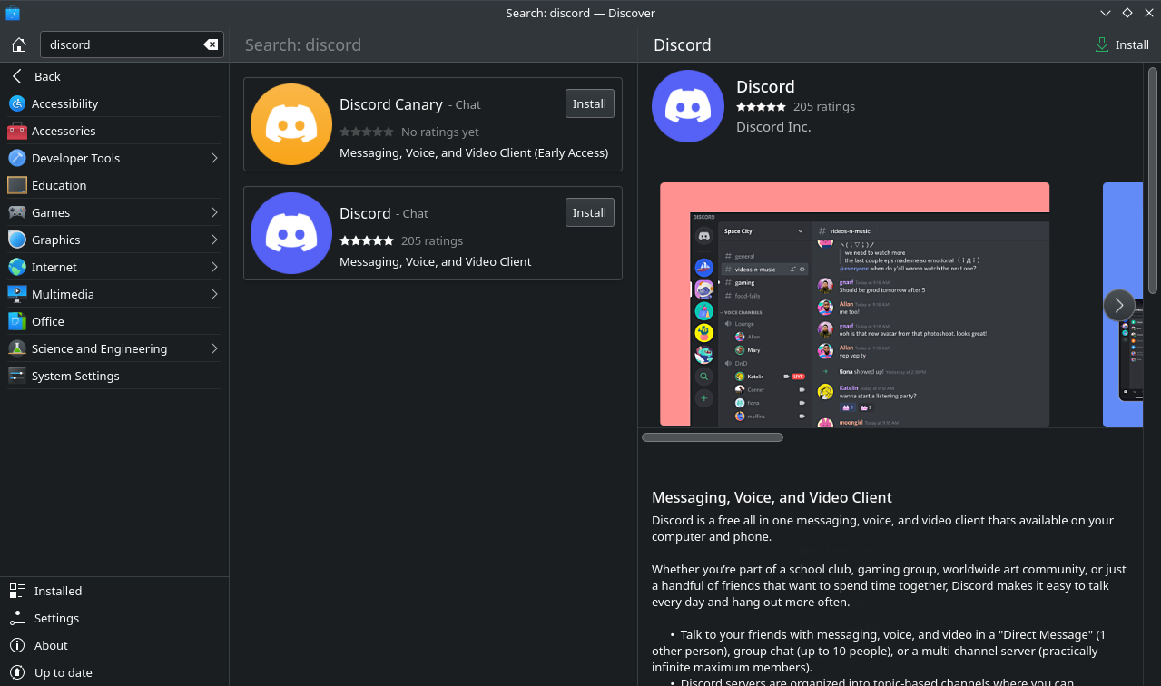Кроме того, воспользовавшись Центром программ Discover вы можете установить программы в виде пакетов Flatpak из репозитория Flathub. Приведем список некоторых программ из огромного списка ПО репозитория Flathub, которые вы можете установить с помощью одного нажатия: Chromium (Firefox используется по умолчанию, хотя Chrome легко устанавливается в пользовательском интерфейсе Deck UI), Discord, Telegram, Blender, Godot Engine, Krita, GIMP, VLC, Inkscape и многие другие.