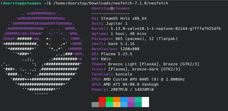 Игровой портативный компьютер Steam Deck от Valve работает на операционной системе SteamOS 3.0, которая основана на легком, гибком дистрибутиве Arch Linux и поставляется с рабочим окружением KDE Plasma.