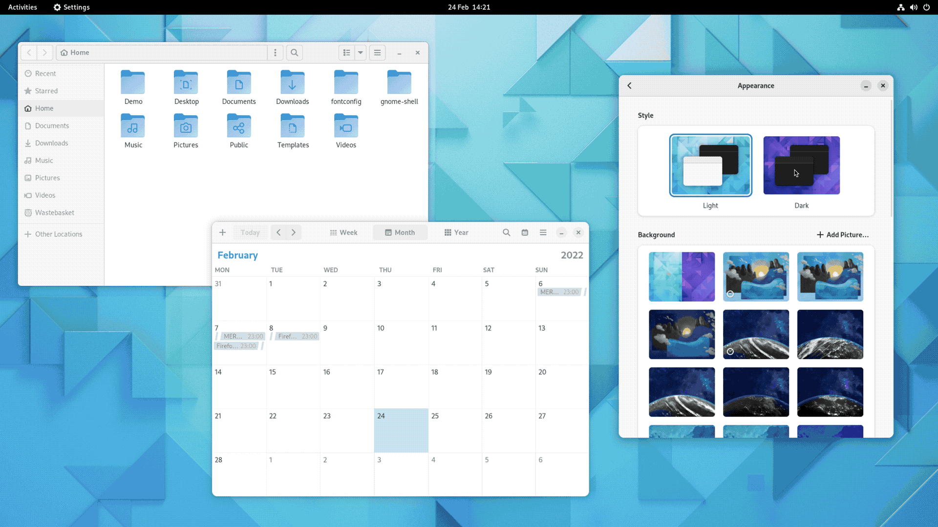 Отметим, что в Gnome 42 среди прочих изменений появится смена обоев рабочего стола при смене глобальной темы оформления, на светлые и темные обои.