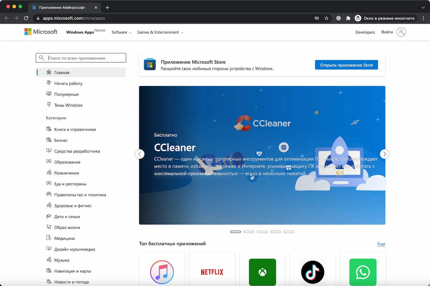 Новый сайт Приложения Майкрософт (Windows Apps) позволяет пользователям посещать страницы приложений на устройствах, на которых не установлено приложение Microsoft Store, и делиться ссылками на любимые приложения с другими пользователями.