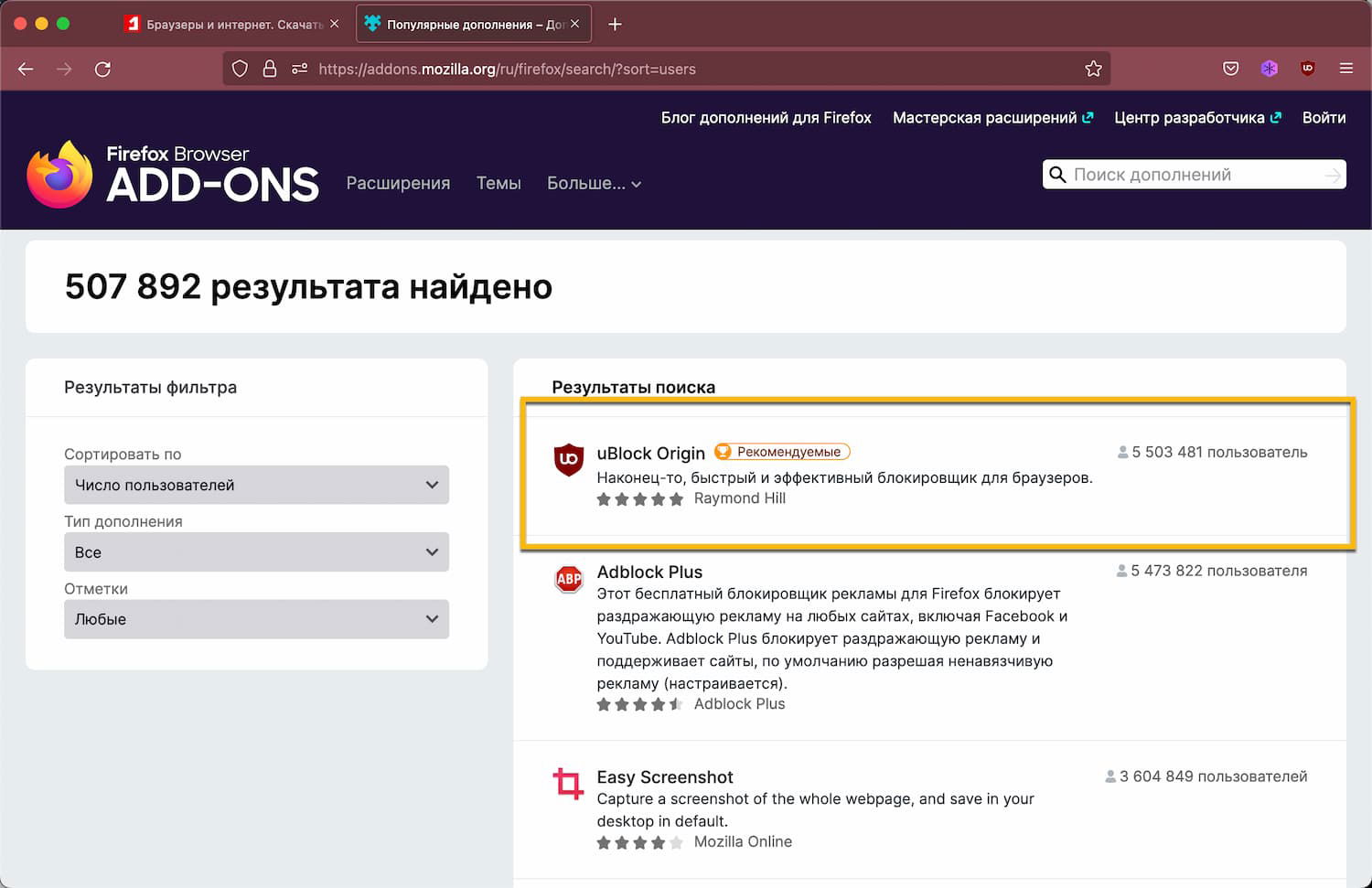 Mozilla сообщает, что uBlock Origin преодолел отметку в 5,5 миллиона пользователей, в то время как Adblock Plus на момент написания статьи насчитывал 5,47 миллиона пользователей. Если эта тенденция сохранится, разрыв между двумя блокировщиками рекламы увеличится в ближайшие месяцы и годы.