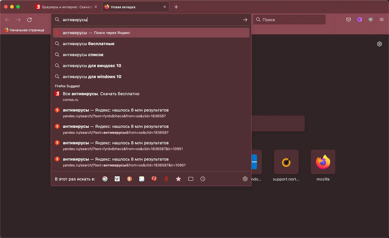 Ваша поисковая система по умолчанию была изменена. Firefox больше не поддерживает Яндекс. Теперь ваша поисковая система по умолчанию – Google.