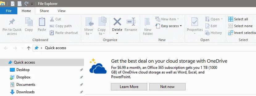 Новая попытка перекрестного продвижения своих продуктов в Windows — не первый запуск рекламы в Проводнике. Еще в 2017 году Microsoft начала рекламировать свой сервис OneDrive в Проводнике на устройствах Windows 10.
