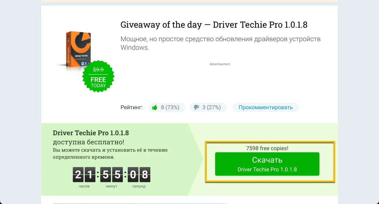 - Перейдите на страницу промо-акции и выберите Скачать Скачать Driver Techie Pro 1.0.1.8.