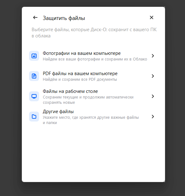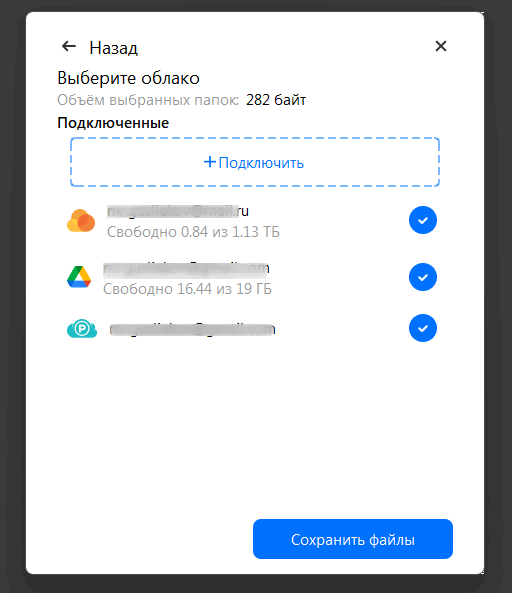 Доступен выбор облачных хранилищ для резервного копирования файлов. Вы можете указать как одно, так и несколько облачных хранилищ для использования функции по защите файлов.