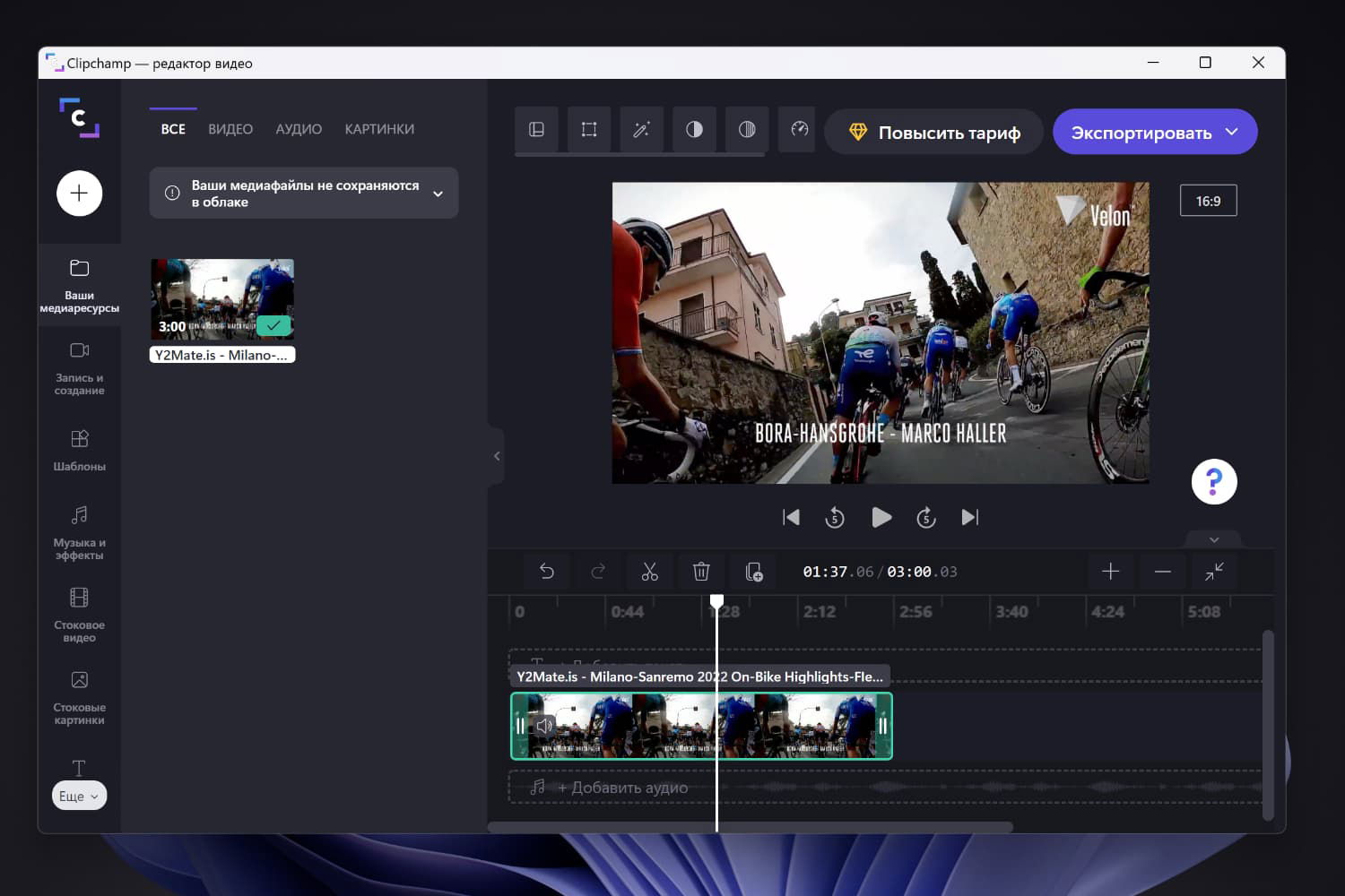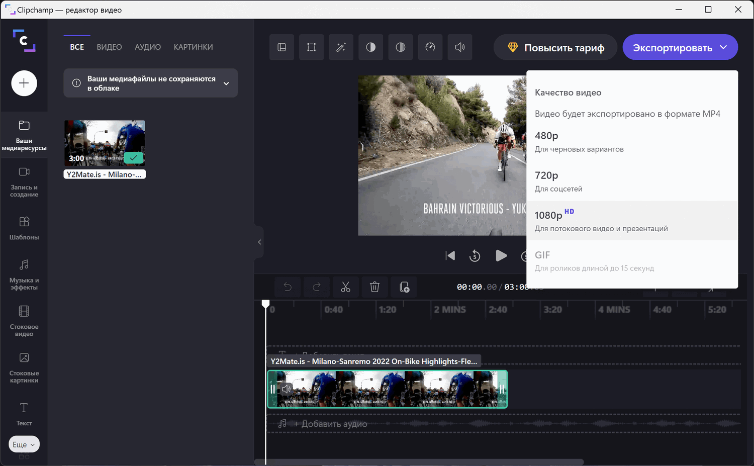 Приложение все же не лишено недостатков. Clipchamp требует наличия учетной записи для работы. Бесплатный план не включает премиум-контента, такого как дополнительные шаблоны, аудио, видео и изображения, фирменные наборы (логотипы, шрифты, цвета). Кроме того, в бесплатной версии нет облачного хранилища, но видеоролики можно сохранять на локально на компьютере.
