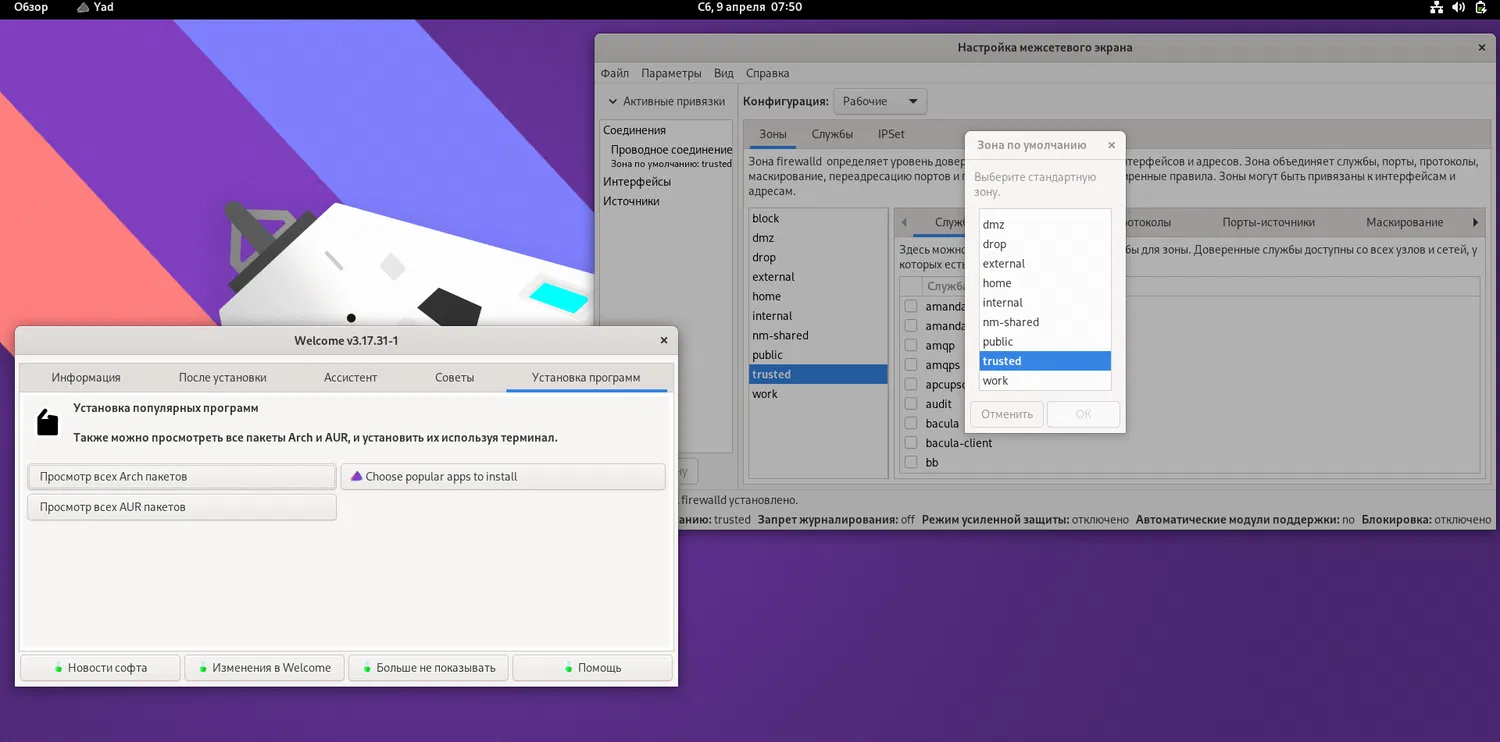 Кроме того, новые установки EndeavourOS теперь будут поставляться с включенным брандмауэром FirewallD, новой графической утилитой, которая позволяет пользователям выбирать и устанавливать нужные им приложения, а также инструмент командной строки, который помогает пользователям видеокарт NVIDIA устанавливать как последнюю версию драйвера NVIDIA, так устаревшие версии драйверов серий 470 и 390.
