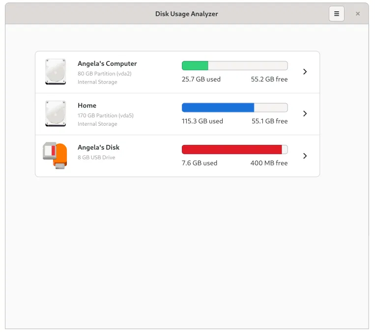 Анализатор использования диска в настоящее время написан на языке Vala, а будет переписан на Rust.