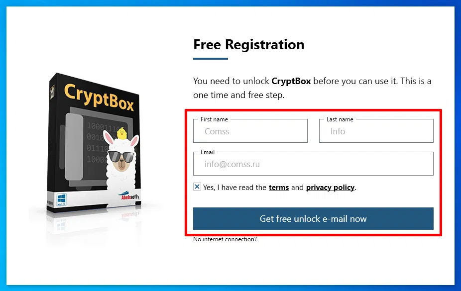 Для получения бесплатной лицензии Abelssoft CryptBox 2023 выполните следующее: