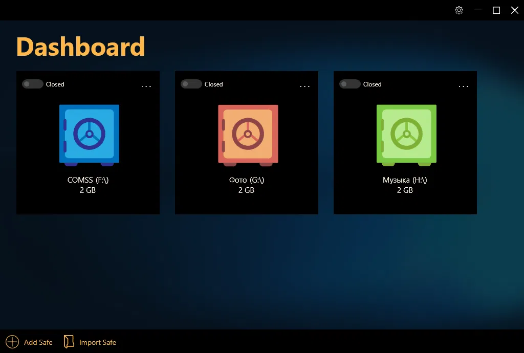 Программа CryptBox проста в использовании. С её помощью, вы создаёте сейф данных на жестком диске, который получает букву диска и отображается в проводнике Windows и файловых менеджерах. Файлы и папки, хранящиеся в сейфе данных, защищены и для доступа к ним требуется ввод пароля.