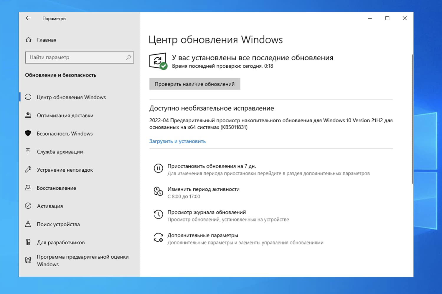 Обновлено: 26.04.2022. Обновление KB5011831 (Сборки 19044.1682, 19043.1682 и 19042.1682) Preview доступно для установки в Центре обновления Windows как «необязательное исправление» и для ручной загрузки в Каталоге Центра обновления Майкрософт.