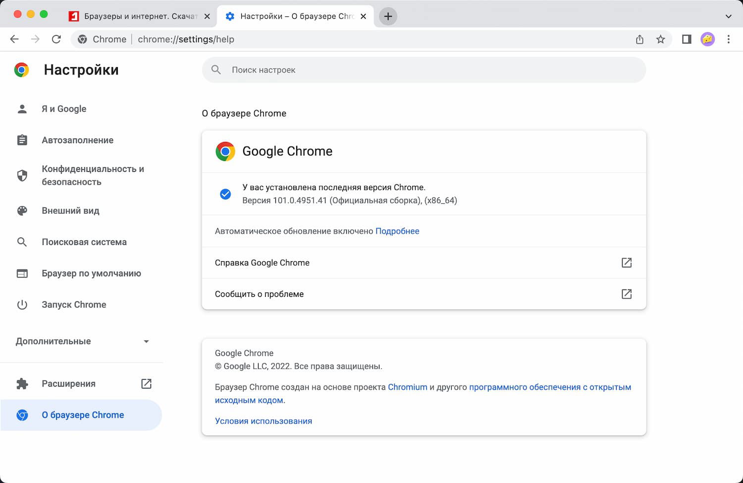 Чтобы проверить версию Google Chrome, перейдите в меню > Справка > О браузере Google Chrome или откройте страницу chrome://settings/help. Если обновление будет доступно, то браузер автоматически скачает и установит свежую версию. Для завершения установки обновления потребуется перезапуск браузера.