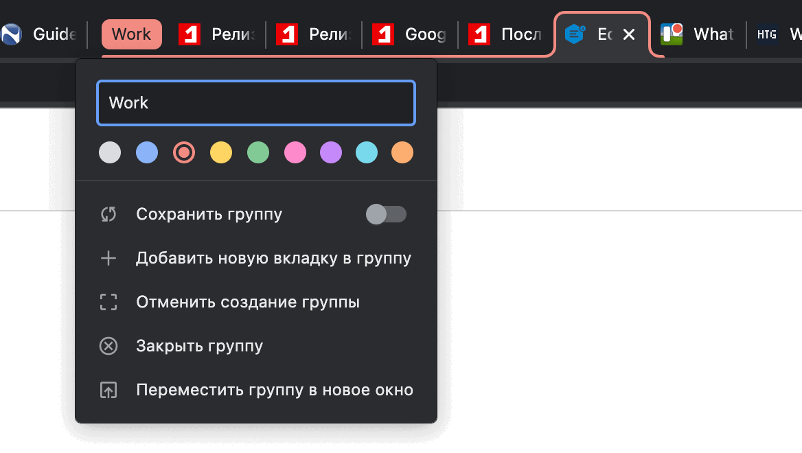 Сохранение групп вкладок