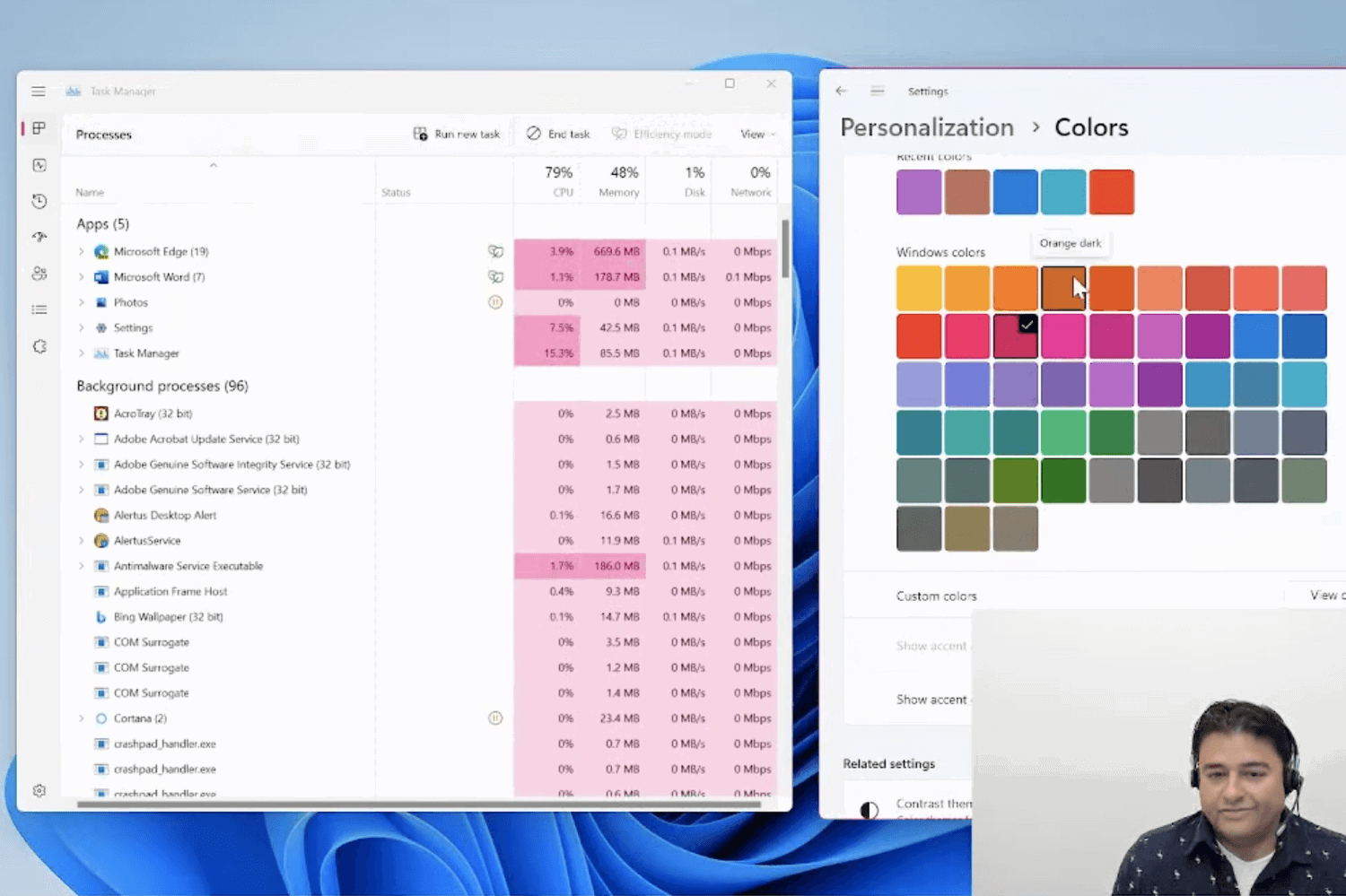 Сейчас Microsoft работает над интеграцией акцентных цветов Windows 11 с тепловой картой. Это показано на снимках экрана из последней веб-трансляции Windows Insiders (вы можете посмотреть демонстрацию, начиная с 16 минуты).