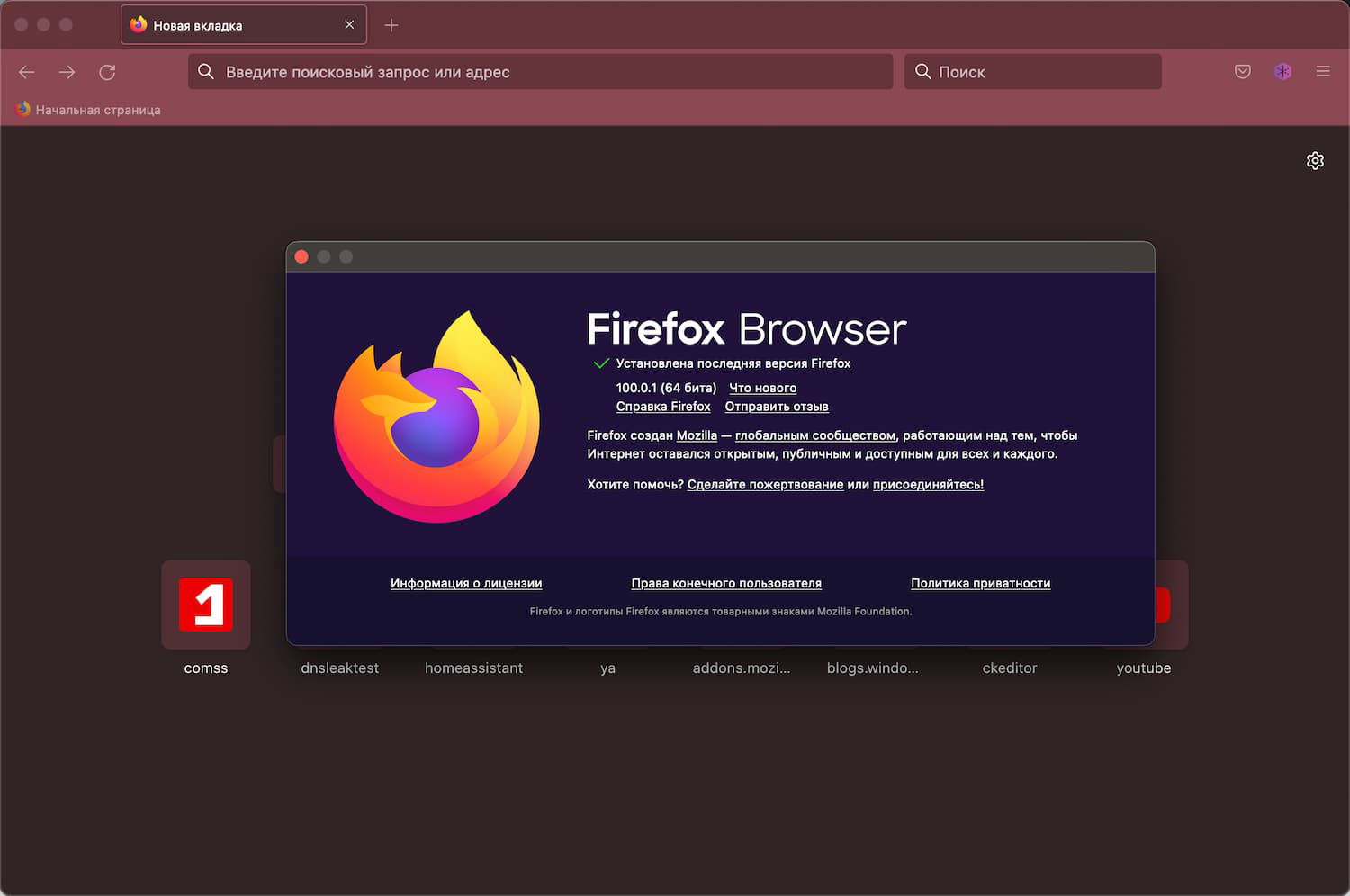 Новая версия Firefox 100.0.1 уже доступна для всех поддерживаемых десктопных ОС. Пользователи Firefox могут перейти в Меню > Справка > О Firefox для ручной проверки доступности обновлений. Браузер скачает новую версию и сразу установит ее. Для завершения установки потребуется перезапуск браузера.