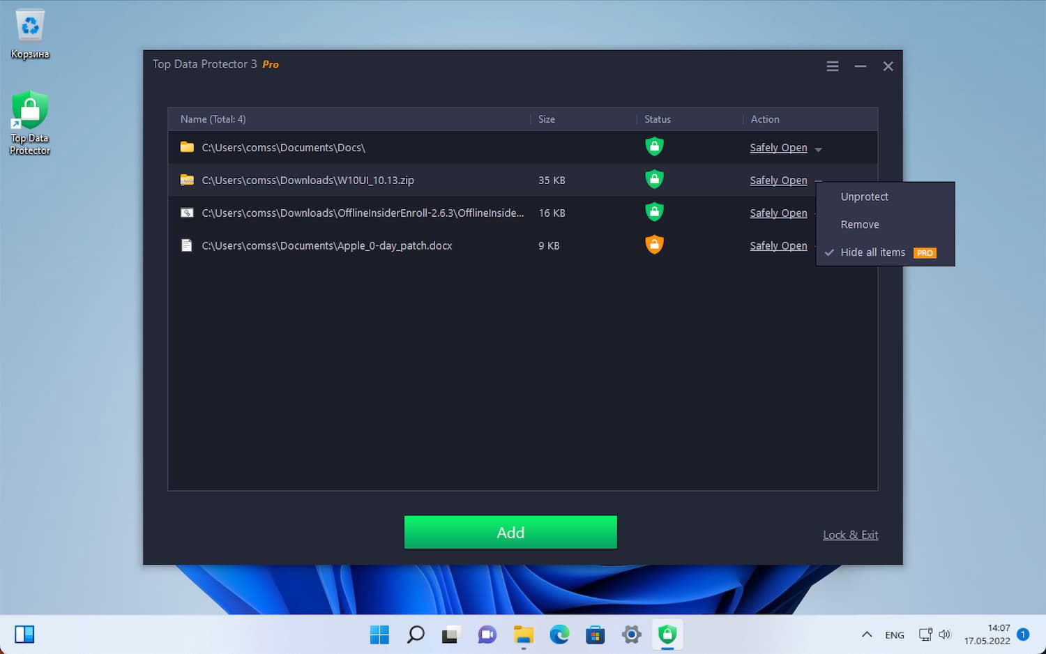 Top Data Protector Pro – утилита для защиты паролем важных файлов и конфиденциальных данных на компьютере под управлением Windows от нежелательного доступа и несанкционированного изменения.