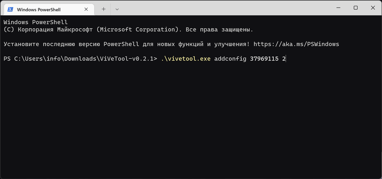 .\vivetool.exe addconfig 37969115 2