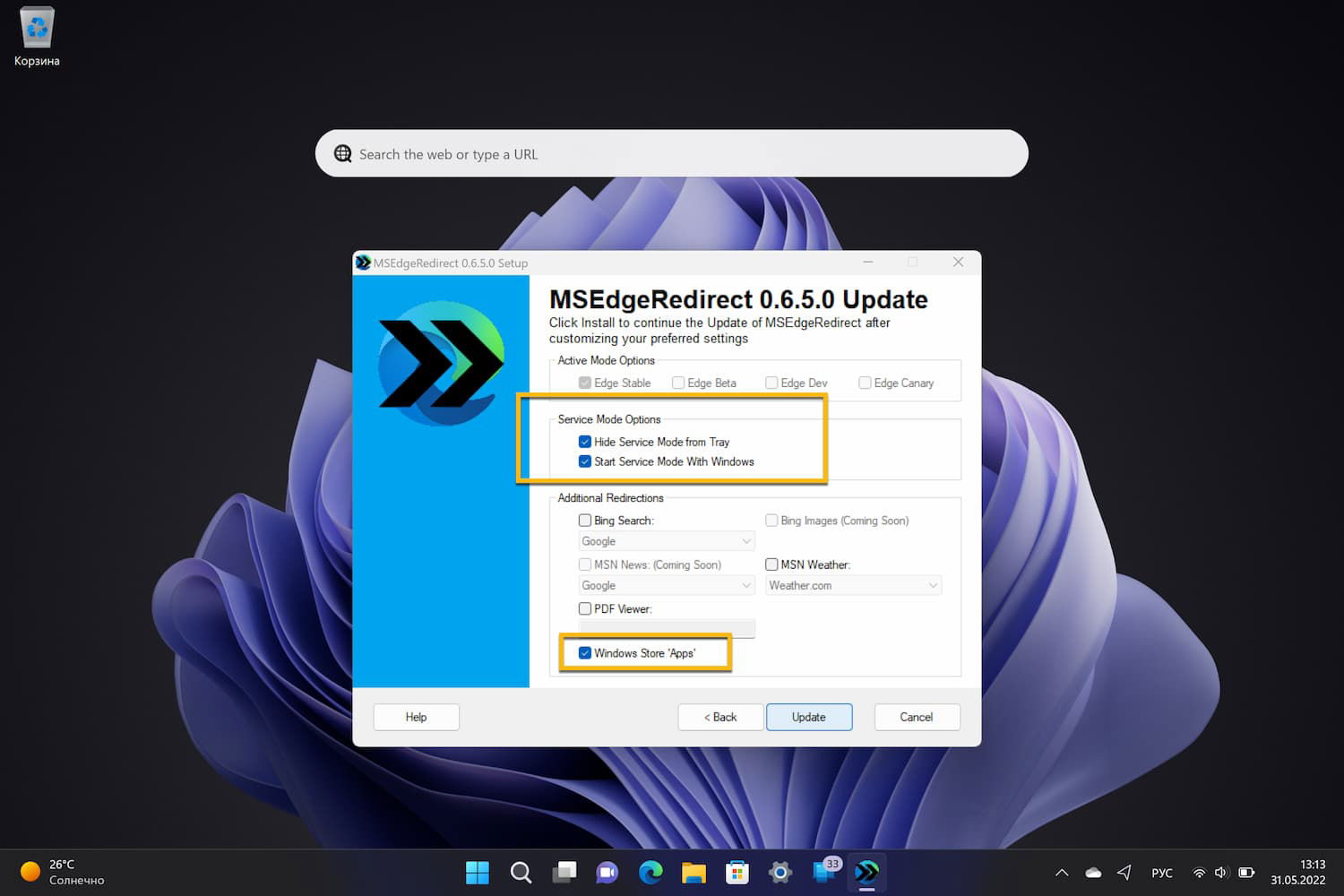 Обратите внимание на бета-статус MSEdgeRedirect. Это обусловлено тем, что Microsoft вставляет палки в колеса подобным решениям. Так например, другое популярное приложение EdgeDeflector больше не работает.