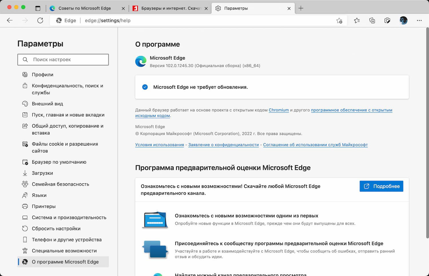 Новая версия Edge 102.0.1245.30 поставляется автоматически с использованием прогрессивного развертывания. Пользователи могут перейти в меню «три точки» > Справка и отзывы > О программе Microsoft Edge, чтобы выполнить проверку доступных обновлений вручную.