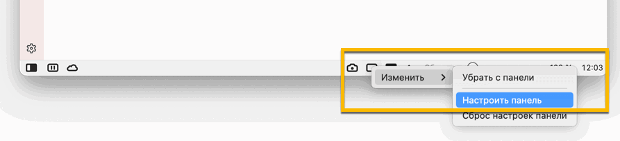 Щелчок правой кнопкой мыши по определенному значку на панели инструментов отображает возможность удаления этого конкретного элемента напрямую, без открытия главного окна редактирования.